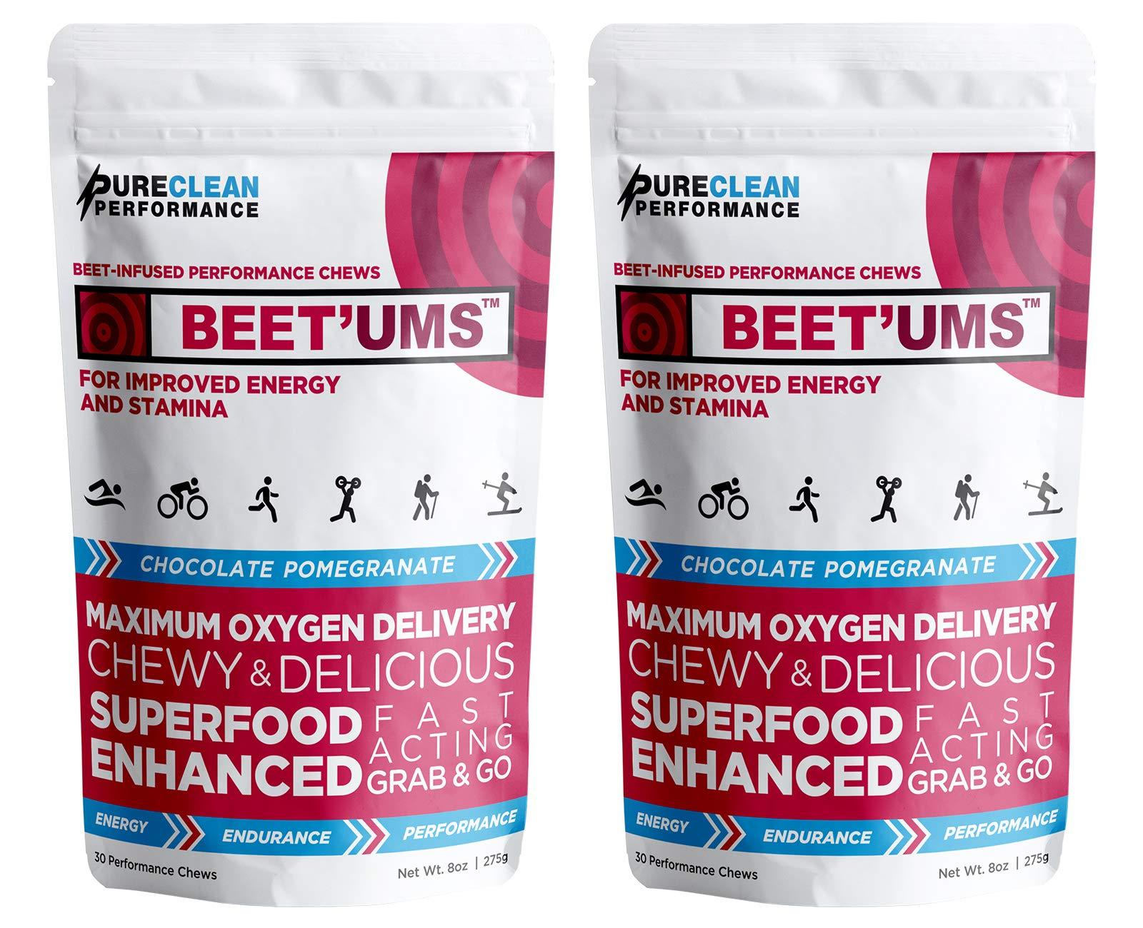 PureClean Performance BEET\'UMS Beet Chews - Premium Organic Beet Juice Powder Supplement - Nitric Oxide Energy & Blood Flow Circulation Support - Real Chocolate Pomegranate Health Chews with 7 Superfoods (2)