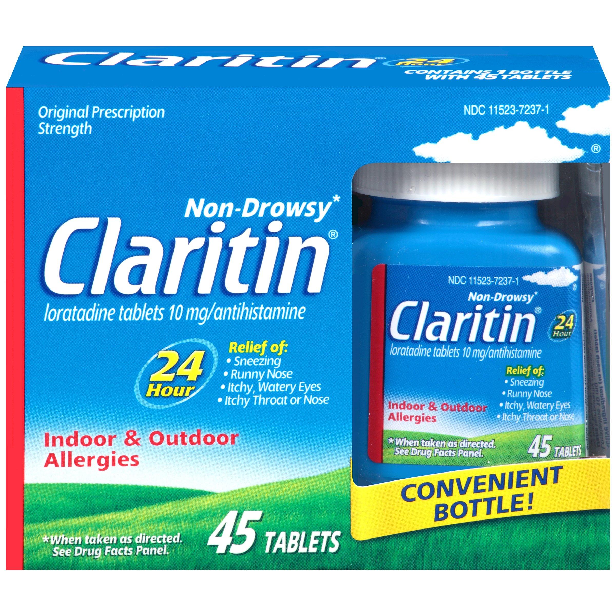 Loratadine tablets 10mg/antihistamine. Large size. Non-Drowsy (when taken as directed). 24 hour relief of: sneezing; runny nose; itchy, watery eyes; itchy throat or nose. 45 days of relief.