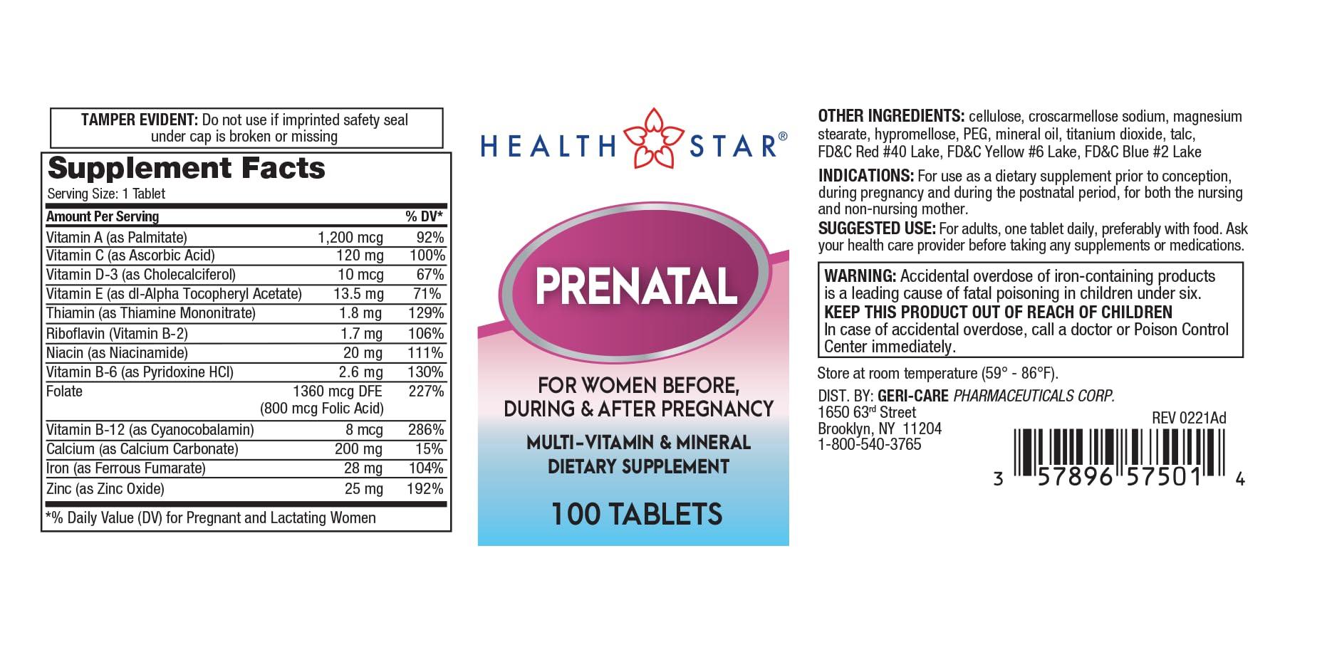- Gericare Prenatal Multi-vitamins: are comprehensive supplements specifically formulated to meet the increased nutritional demands during pregnancy. Each Tablet is created with careful consideration of the nutrients important for fetal development and maternal well-being.