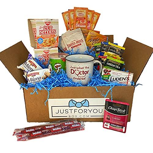 - Good snacks for sick people: Care package includes mix of sweet and savory snacks that are the best variety and value on Amazon with the essentials of individually wrapped drinks, snacks and goodies plus a cute mug. It's an under the weather fun pack!