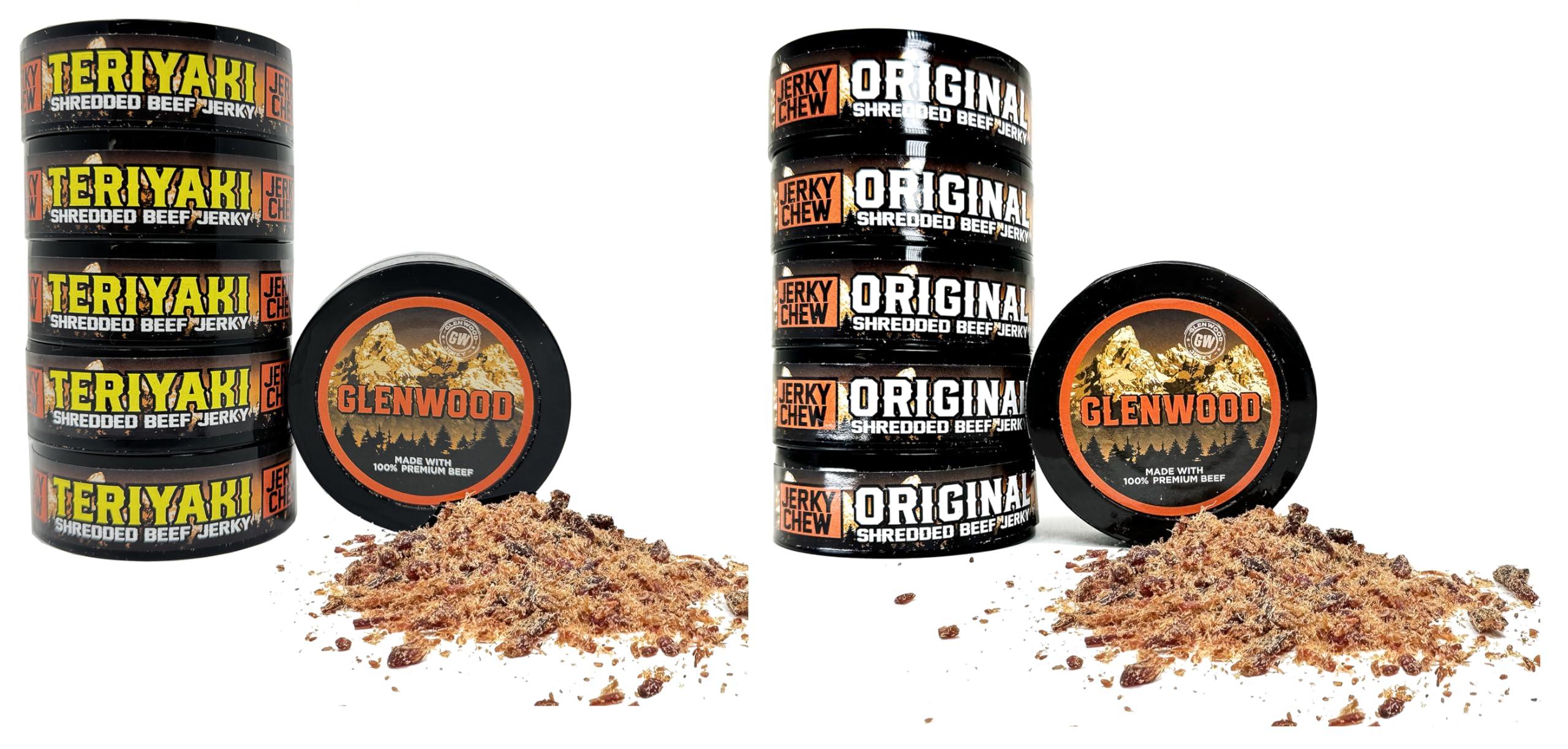 Glenwood Variety Pack of Beef Jerky Chew, Shredded Beef Jerky, Teriyaki and Original Jerky Chew 0.32 oz Cans
