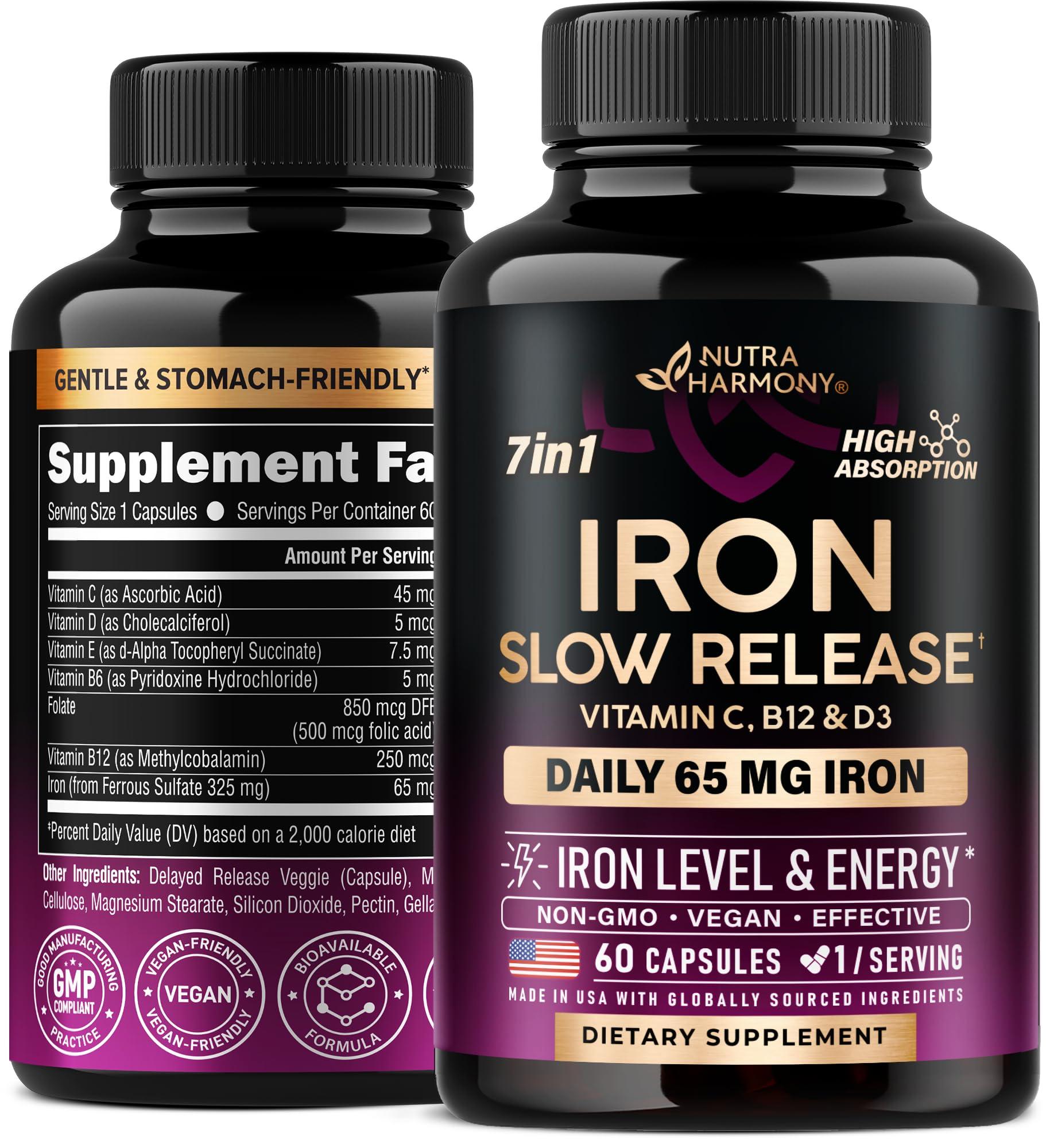 - Gentle & Stomach-friendly Crafted with a delayed-release technology, our iron supplement releases in the intestines, reducing side effects and enhancing absorption. This gentle iron supplement for women and men ensures you receive the full benefits of the iron vitamin C complex without the common digestive issues associated with iron supplements. The slow-release iron technology makes it a perfect choice for those seeking a gentle iron experience.