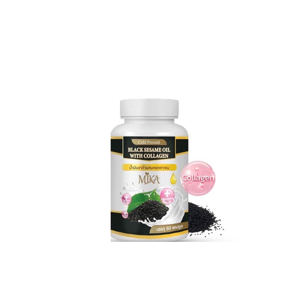 Mika Cold-pressed black sesame oil mixed with collagen 60 softgels nakarad store