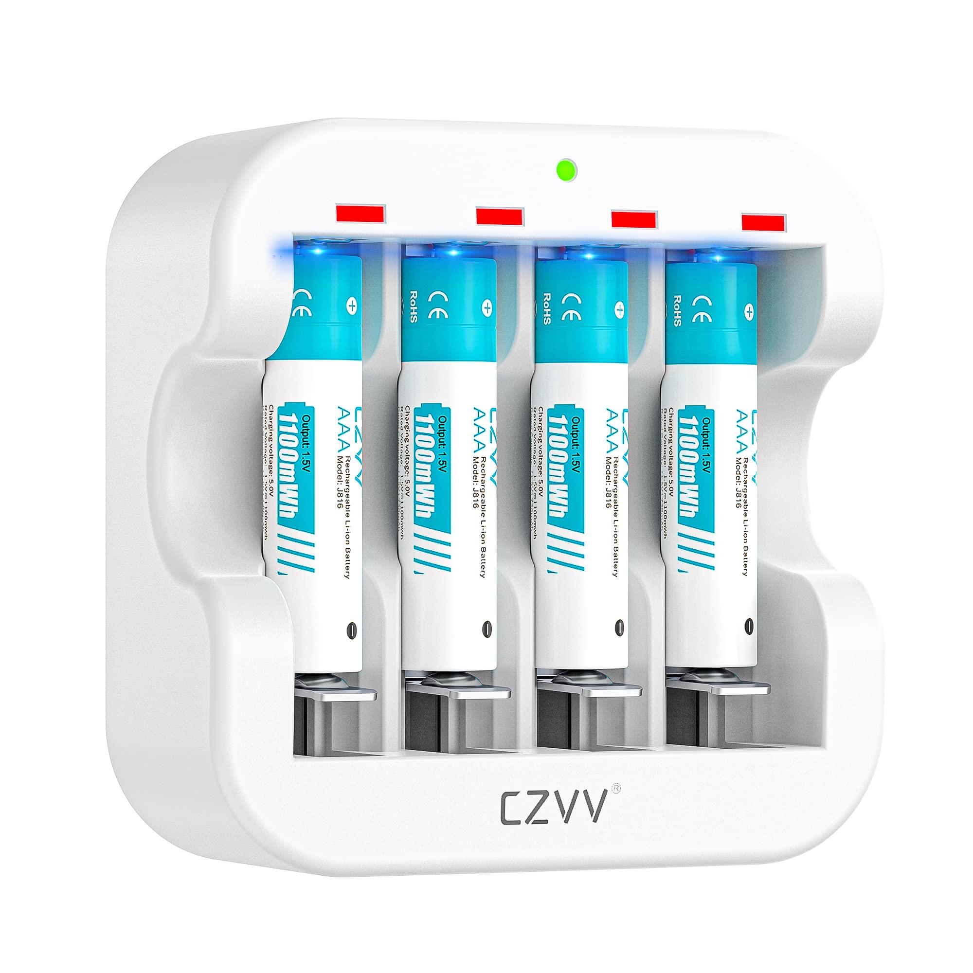 - What You Get: CZVV Ultra 1100mWh 1.5V AAA Batteries(4 Count Pack), CZVV Q022 Pro Individual Portable Charger, Type-C Lightning Cable, User Guide, Batteries Storage Case, our worry-free 12-month warranty, and friendly customer service