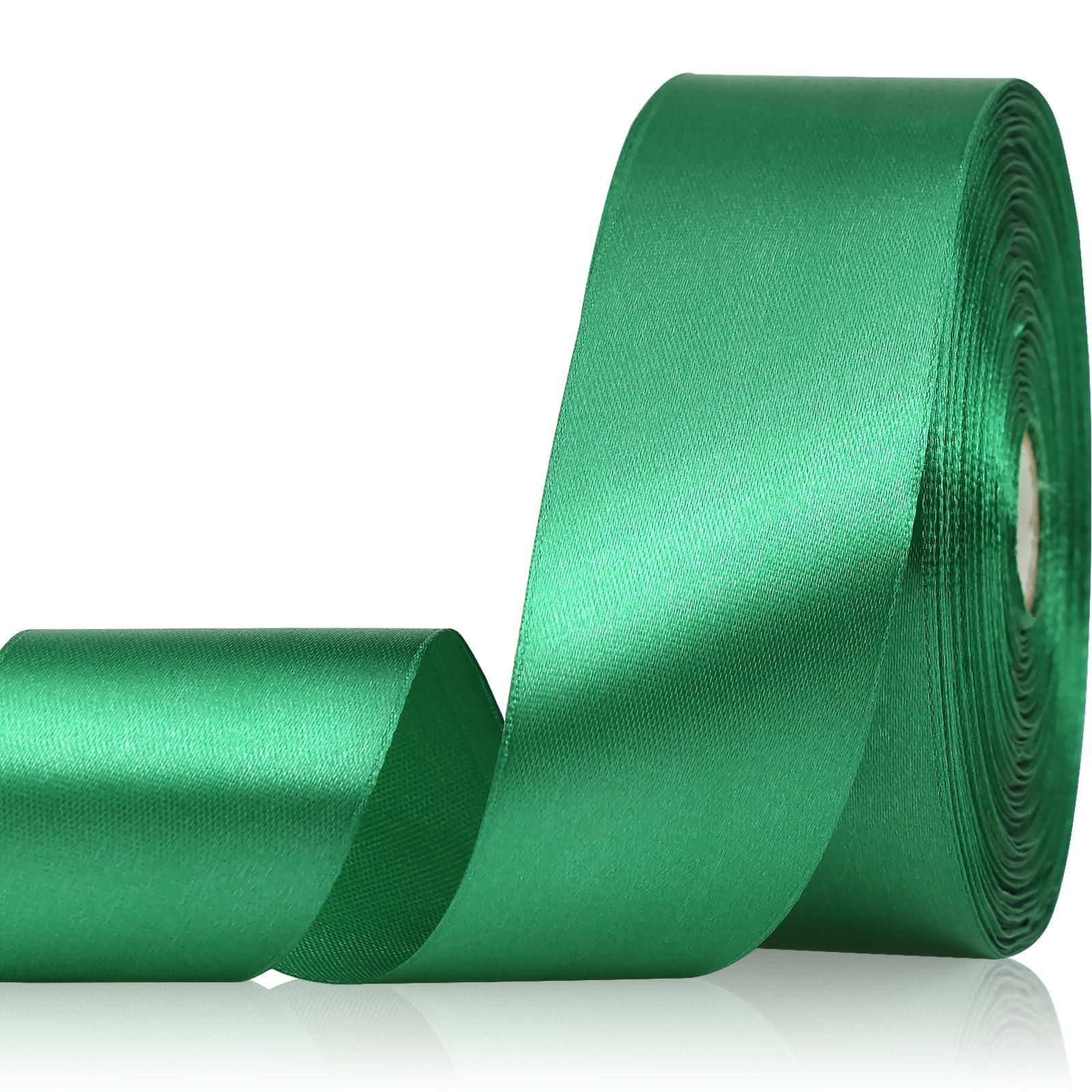 - High-quality fabric : This high quality single sided ribbon is made of 100% polyester fiber, with a silky smooth and shiny surface,durable and flexible. Measuring 1-1/2 inch wide and 50 yards long,providing ample length for multiple uses