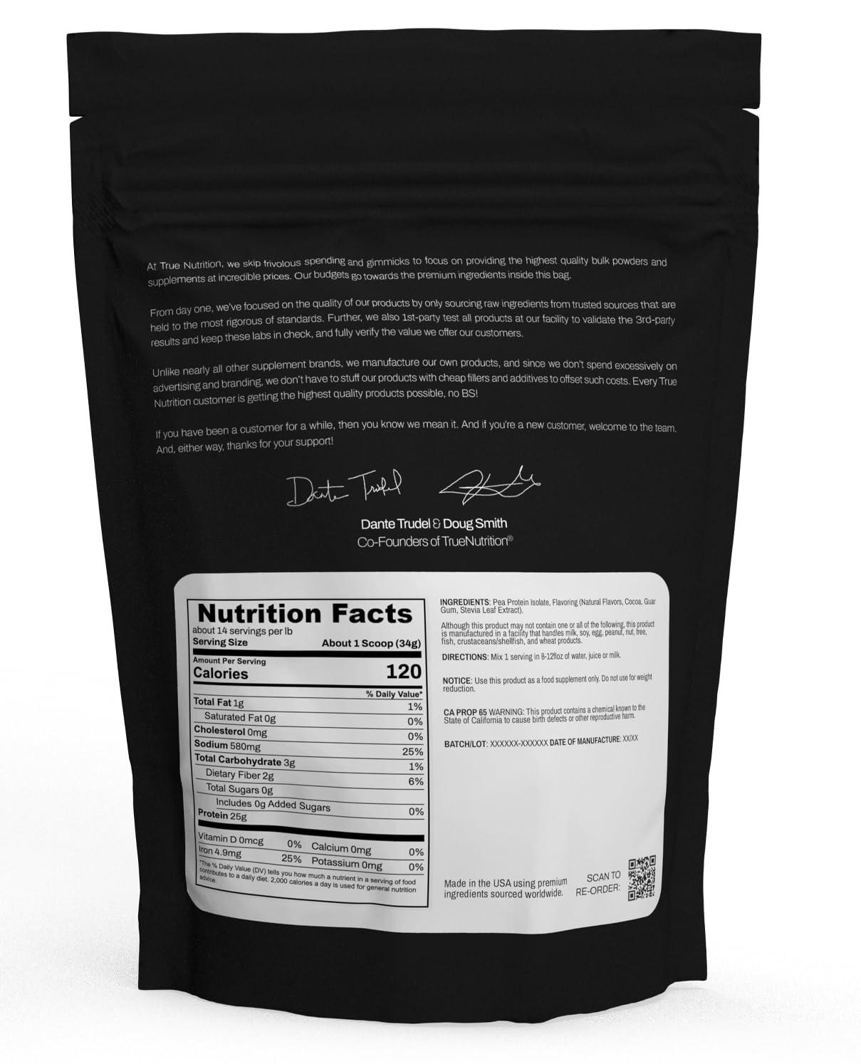 - NON-GMO. GLUTEN FREE. DAIRY FREE. SOY FREE. True Nutrition prides themselves in providing the most pure and high quality protein powders on the market. The only ingredient in TNs Pea Protein Isolate...is pea protein isolate!