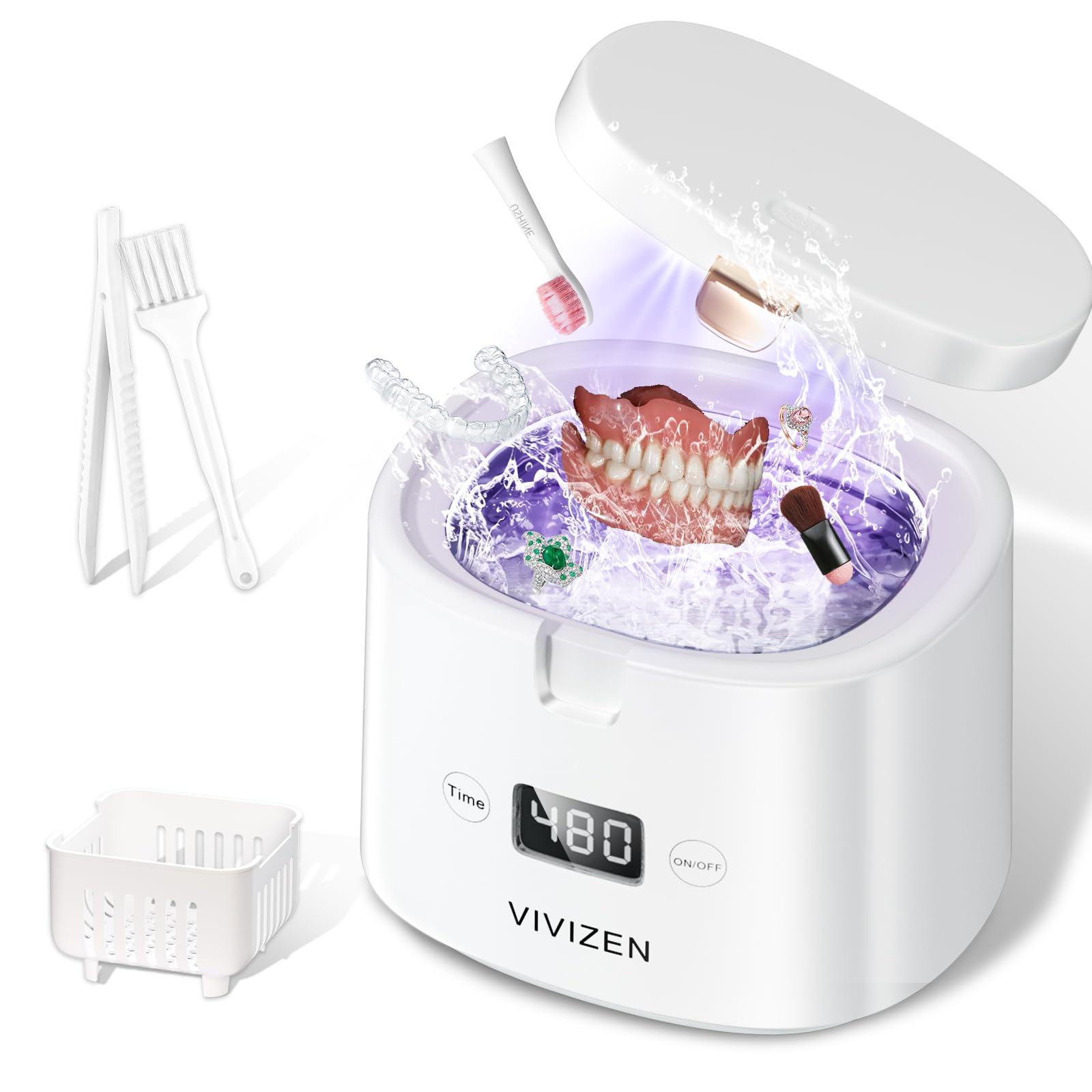 - [Professional and Efficient Cleaning] VIVIZEN ultrasonic retainer cleaner utilizes 45,000Hz sound wave technology to effortlessly eliminate surface particles and dirt, ensuring a thorough 360 all-round deep clean. Ideal for aligners, braces, mouth guards, and jewelry, this powerful 30W retainer cleaner reaches inaccessible areas for a pristine finish.
