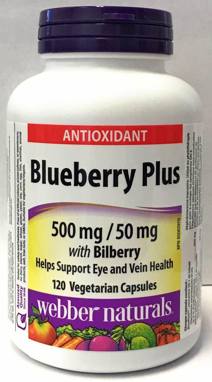 Webber Naturals Blueberry Plus, 500mg / 50mg with bilberry, 120 vegicaps